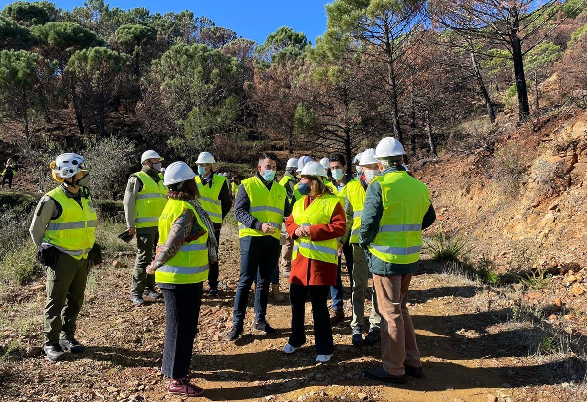 La consejera de Agricultura, Ganadería, Pesca y Desarrollo Sostenible, Carmen Crespo, ha visitado las obras de emergencia del área afectada por el incendio de Sierra Bermeja, labores en las que "las administraciones públicas están actuando con agilidad" para "restaurar la zona lo mejor y más rápido posible".