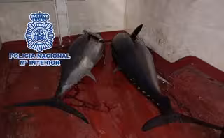 Agentes de la Policía Nacional han decomisado en Estepona (Málaga) dos atunes rojos pescados de forma irregular y transportados sin cumplir las condiciones de salubridad. Además han propuesto para sanción al conductor del vehículo, un hombre de 33 años y nacionalidad española, que lo transportaba sin documentación ni daba explicaciones de cómo había realizado la captura.