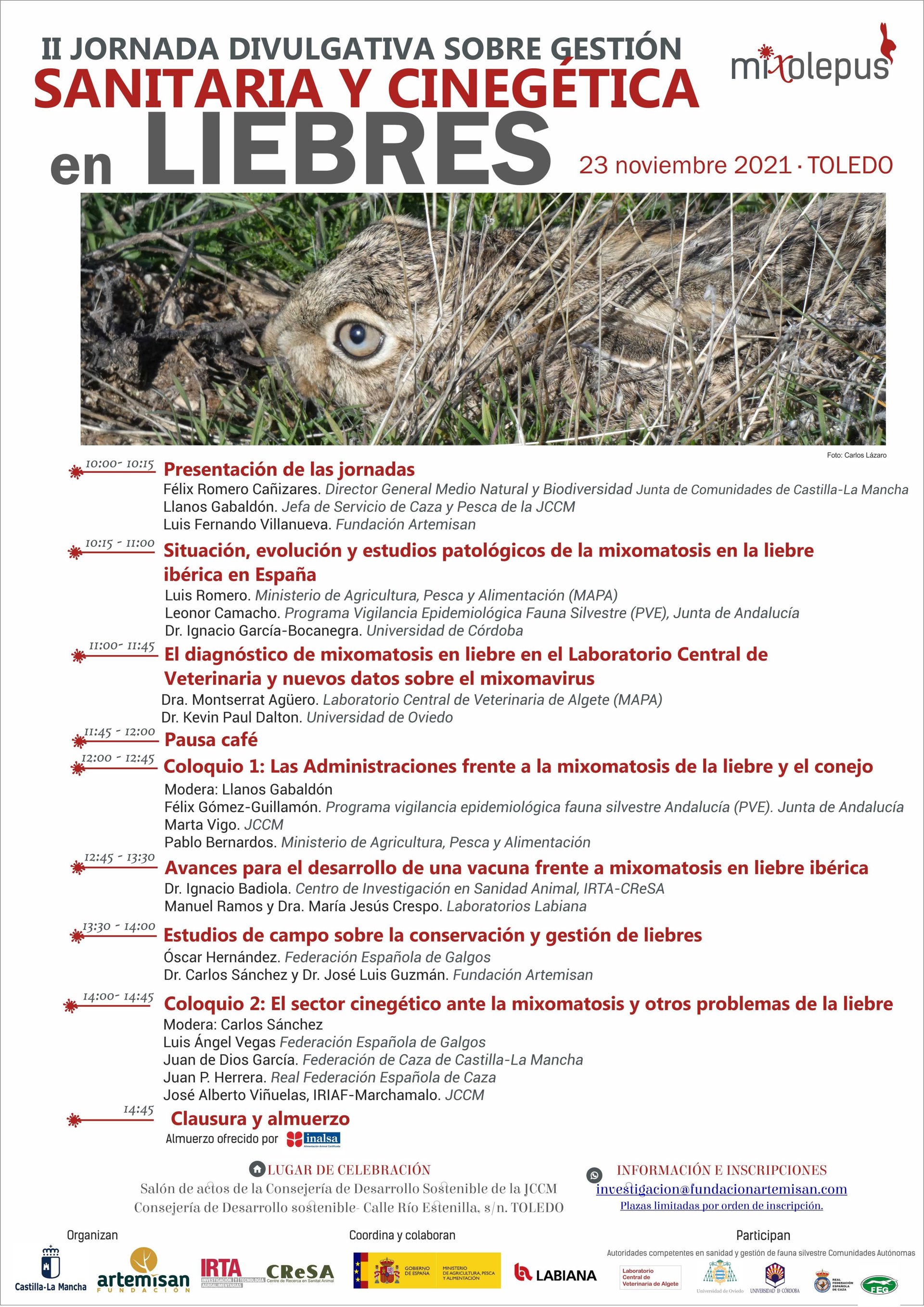 El grupo de trabajo MIXOLEPUS abordará la situación de la mixomatosis en liebres y la gestión de la especie en la II Jornada divulgativa sobre gestión sanitaria y cinegética en liebres, que se celebrará en Toledo el próximo 23 de noviembre en el Salón de Actos de la Consejería de Desarrollo Sostenible.