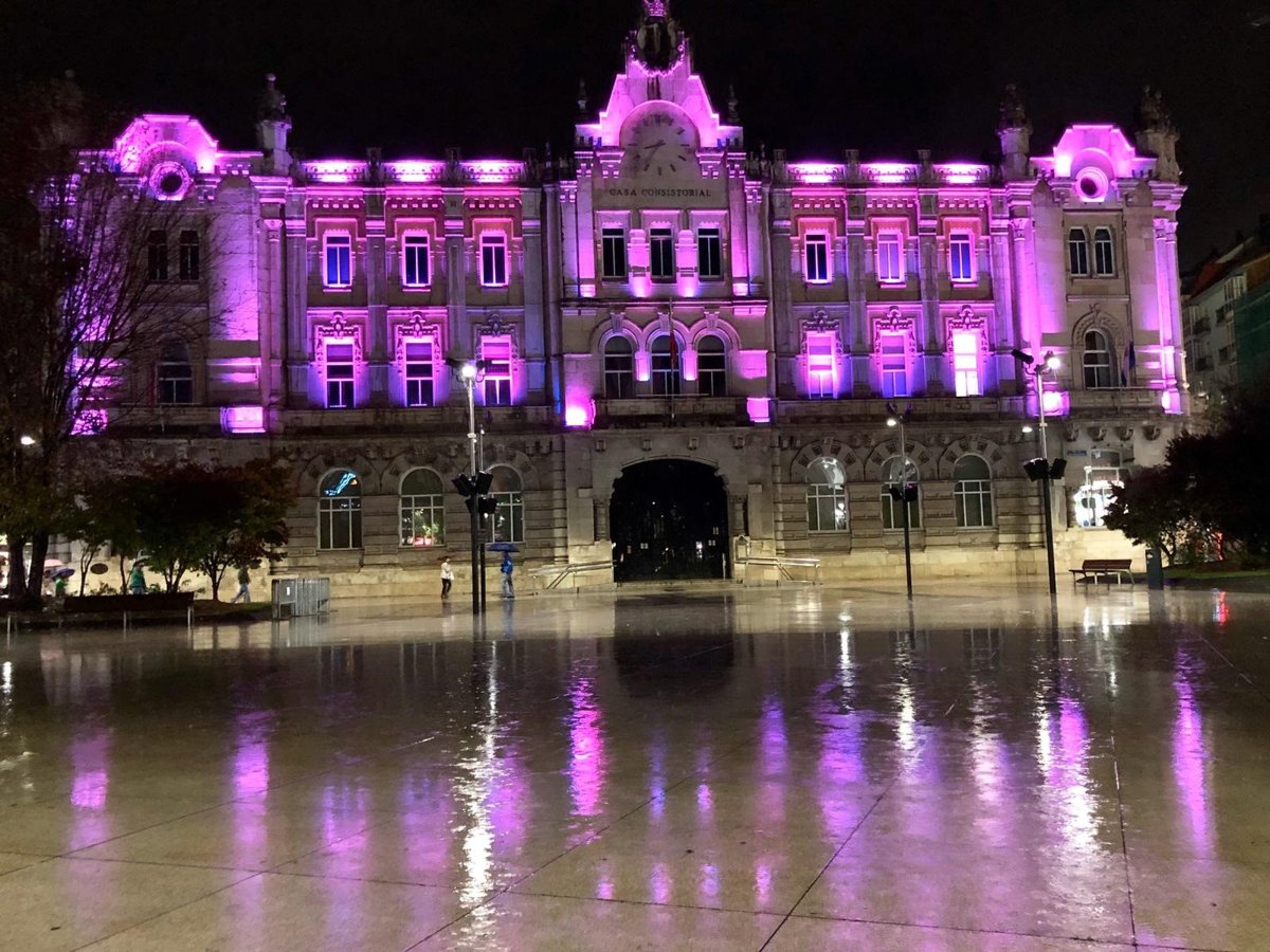 Archivo - La fachada del Ayuntamiento de Santander iluminada de rosa - AYUNTAMIENTO DE SANTANDER - Archivo