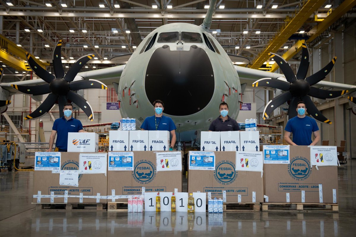 La entrega de los alimentos se ha realizado en las instalaciones de Airbus a representantes de la Fundación Banco de Alimentos de Sevilla, agentes sociales de la provincia, que han conseguido mantener su actividad en estos momentos excepcionales, según ha informado Airbus en un comunicado.