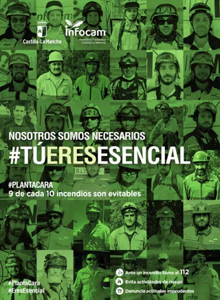 La Consejería de Desarrollo Sostenible ha presentado este lunes en Guadalajara la segunda fase de la campaña de sensibilización y concienciación contra los incendios forestales dirigida a la ciudadanía puesta en marcha el pasado 1 de junio, '#Plantacara, contra los incendios forestales #EresEsencial', coincidiendo con la fase de riesgo extremo por altas temperaturas. Con esta segunda parte quiere reconocer la labor "imprescindible" de los integrantes del dispositivo Infocam.