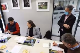 Sánchez (dcha.), junto al jurado en una de las catas. - DIPUTACIÓN DE CÓRDOBA