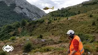 El Grupo de Rescate del Servicio de Emergencias del Principado de Asturias (SEPA), a bordo del helicóptero medicalizado de Bomberos de Asturias, ha asistido y rescatado a un ganadero que resultó herido en una pierna tras ser golpeado por una vaca, en Carombo, Amieva.