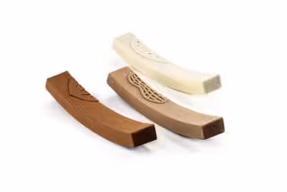 El kit está formado por tres moldes de pvc de alta calidad y durabilidad, y un recetario con propuestas y decoraciones para que cada profesional desarrolle su imaginación y personalice ese turrón curvo con atractivas presentaciones y texturas.
