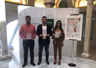 El alcalde de Gerena, Javier Fernández, ha presentado este miércoles oficialmente la Ruta en la Casa de la Provincia, junto a la concejala de Turismo, María Tenorio, y el diputado provincial de Cultura, Alejandro Moyano.