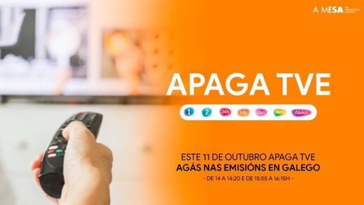 En este marco, A Mesa pola Normalización Lingüística ha decidido denunciar la situación y promover un apagón a RTVE la próxima semana. La asociación llama a las sociedad a secundar esta protesta y apagar la programación del canal público estatal a lo largo de toda la jornada del lunes, excepto los 39 minutos que emite en lengua gallega (entre las 14,00 y las 14,20 horas y entre las 15,55 y las 16,15 horas.