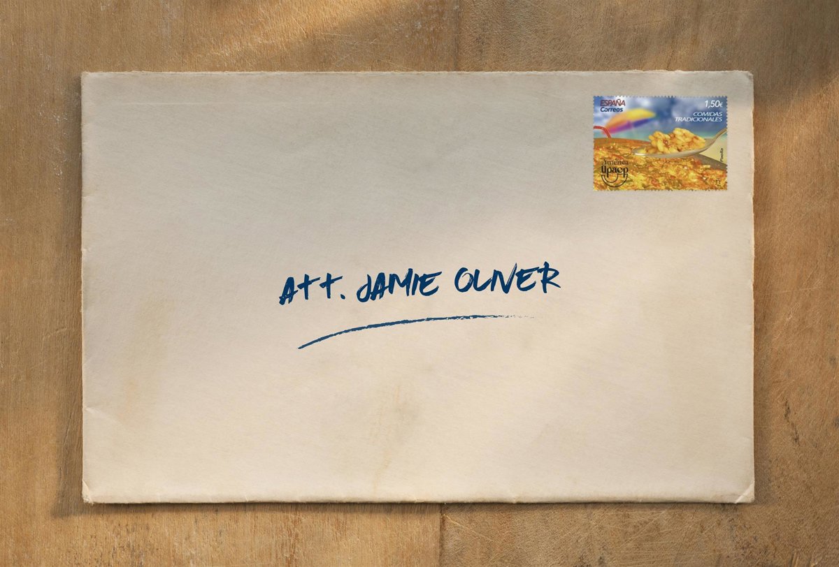 Wikipaella, con motivo del lanzamiento del sello de la paella, ha puesto en marcha una campaña de movilización con la que pretende que los españoles y amantes de la gastronomía utilicen su nuevo sello para enviarle una carta al chef británico Jamie Oliver con la que "hacer las paces" e invitarle a cocinar una paella valenciana clásica en lugar de su controvertida paella con chorizo.