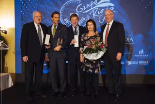 Más de 250 personas participaron ayer en la gala que Grupo Rioja ofreció en el restaurante La Merced, de Logroño, para conmemorar su 50º aniversario. Representantes de las bodegas compartieron la velada con entidades, instituciones y empresas vinculadas al mundo del vino, autoridades y medios de comunicación, así como de las 15 empresas proveedoras que apoyaron el evento con su patrocinio.