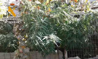 Los agentes identifican al responsable del cultivo y realizan una inspección en el solar, en el que bajo un techo de malla agrícola se encuentra un cultivo de marihuana con plantas de unos dos metros de altura.