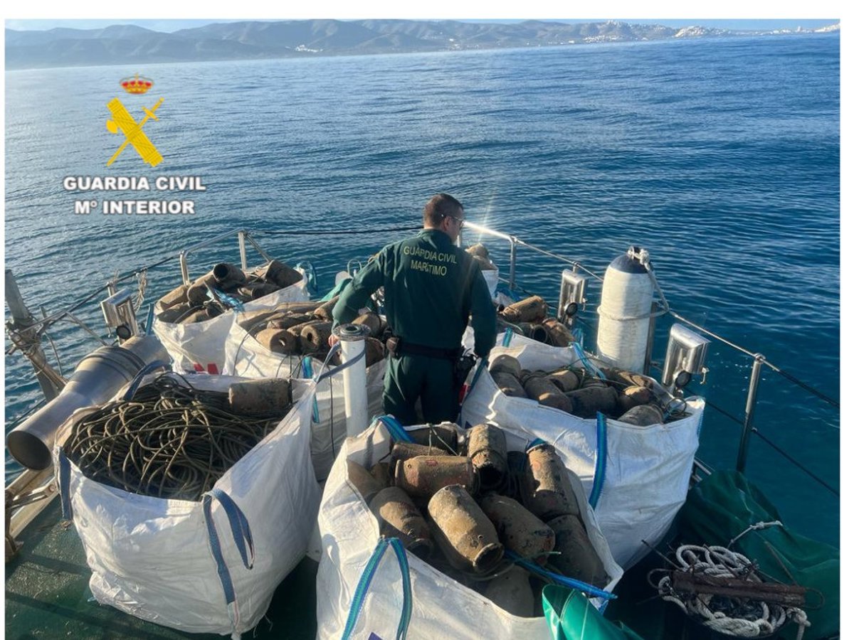 Los guardias civiles, junto con un inspector de la Conselleria de Pesca de la Generalitat Valenciana, liberaron la línea y recuperaron del fondo marino un total de 760 cadufos, que quedaron depositados en