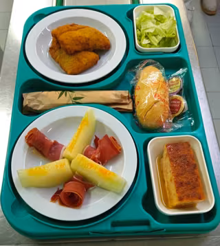 Según una nota, se oferta un menú opcional para los pacientes con dieta basal, acompañantes y personal de guardia, con dos opciones de primero, segundo y postre, y un menú específico para las dietas terapéuticas definido por la Unidad de Dietética y Nutrición adaptada a la patología de cada paciente, basados en la dieta mediterránea y adaptados a las altas temperaturas.