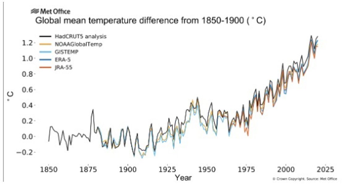 En concreto, el estudio señala que la temperatura media a nivel mundial de 2020 estuvo 1,2 grados centígrados (C) por encima de los valores preindustriales (1850-1900) y concluye que los últimos seis años, desde 2015, han sido los más cálidos jamás registrados, al tiempo que, en su conjunto la década transcurrida entre 2011 y 2020 fue la década más cálida nunca antes observada.