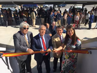 La delegada territorial de Agricultura, Ganadería, Pesca y Desarrollo Sostenible de la Junta en Córdoba, Araceli Cabello, junto al secretario general de Agricultura, Ganadería y Alimentación, Vicente Pérez, ha asistido a la inauguración de las nuevas instalaciones de Dehesas Reunidas, en Belmez (Córdoba), donde ha destacado la apuesta que realiza esta empresa por el jamón ibérico de bellota, "un producto de excelencia que contribuye a la sostenibilidad de nuestra dehesa".