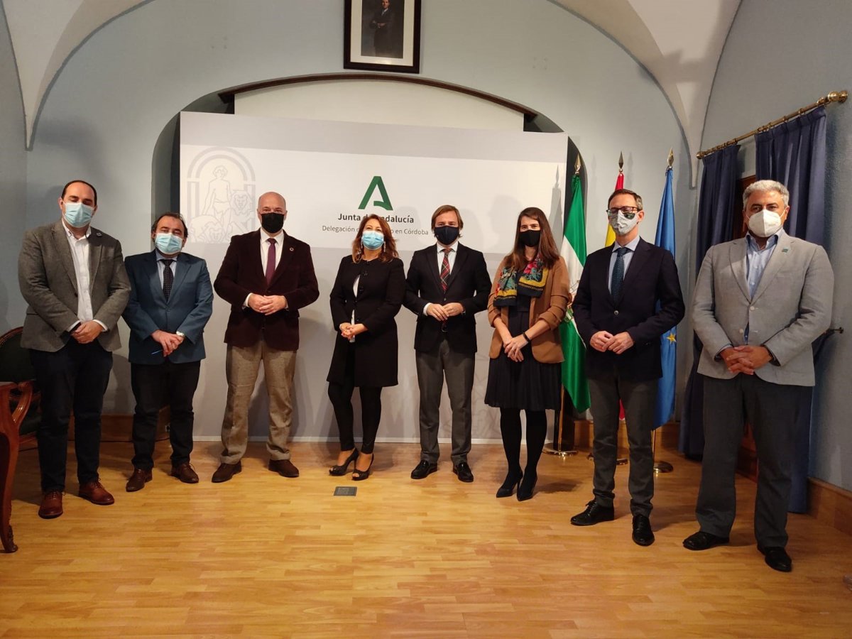 La consejera de Agricultura, Ganadería, Pesca y Desarrollo Sostenible, Carmen Crespo (cuarta por la izda.), y el presidente de la Diputación de Córdoba, Antonio Ruiz (tercero), tras la firma de los convenios. - EUROPA PRESS