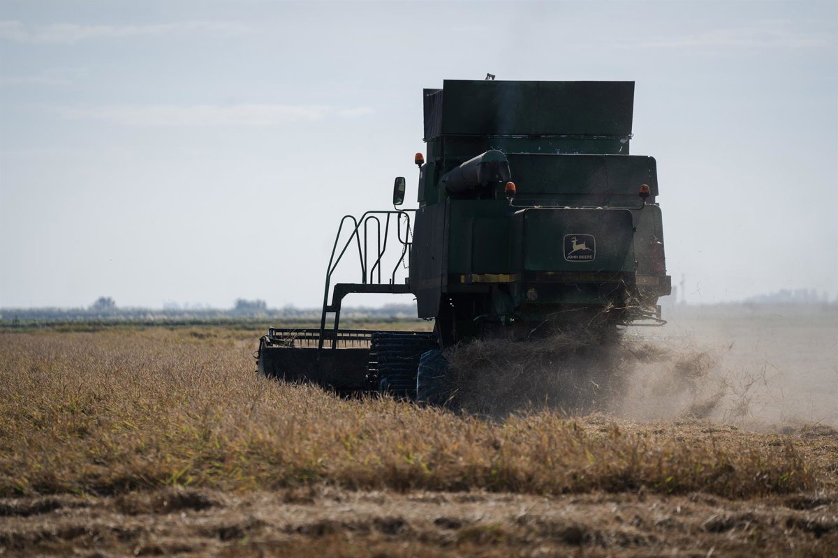 Archivo - Cosechadora de arroz durante la recolecta en las marismas del Guadalquivir. A 22 de octubre de 2024, en Sevilla (Andalucía, España). Los arroceros de las marismas del Guadalquivir han empezado esta semana su cosecha después de dejar unos días q - María José López - Europa Press - Archivo