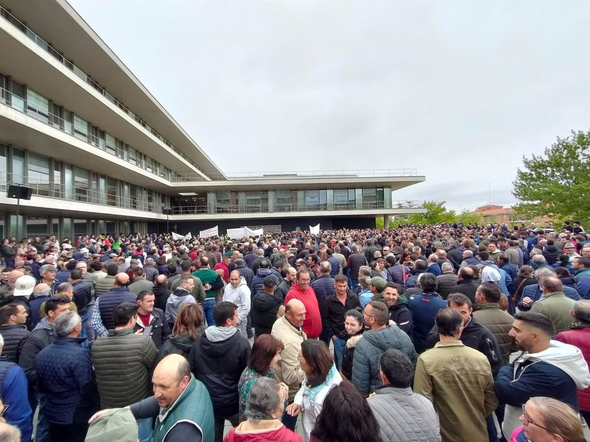 Ganaderos de la provincia de Salamanca, en torno a un millar según fuentes policiales y más de 3.000 según los convocantes, se han concentrado este miércoles ante las puertas de la Delegación Territorial de la Junta en Salamanca para pedir "soluciones" para el sector del vacuno.
