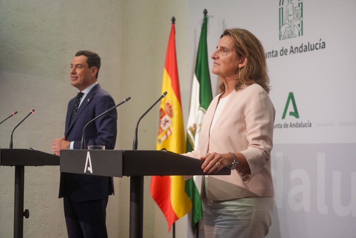 El presidente de la Junta de Andalucía, Juanma Moreno, y la vicepresidenta tercera del Gobierno y ministra para la Transición Ecológica y el Reto Demográfico, Teresa Ribera, se reunirán el día 22 de este mes, en Sevilla, para abordar actuaciones de lucha contra la dura sequía que sufre la comunidad autónoma.