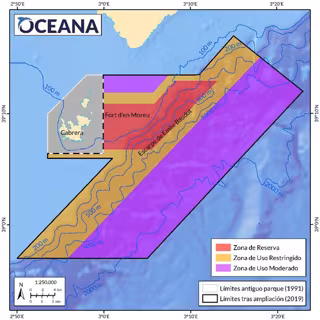 Un mapa en el que se muestra la propuesta de zonificación presentada por Oceana para la zona ampliada del Parque Nacional de Cabrera. - OCEANA