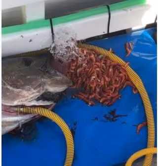 Atún rojo junto a las gambas sacadas de su estómago. - PESCADORES DE VINARS