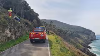 Bomberos del 112 han rescatado este domingo, 9 de abril, a un senderista con posible fractura de tibia y peroné mientras realizaba una ruta por el Faro del Pescador, en Santoña.