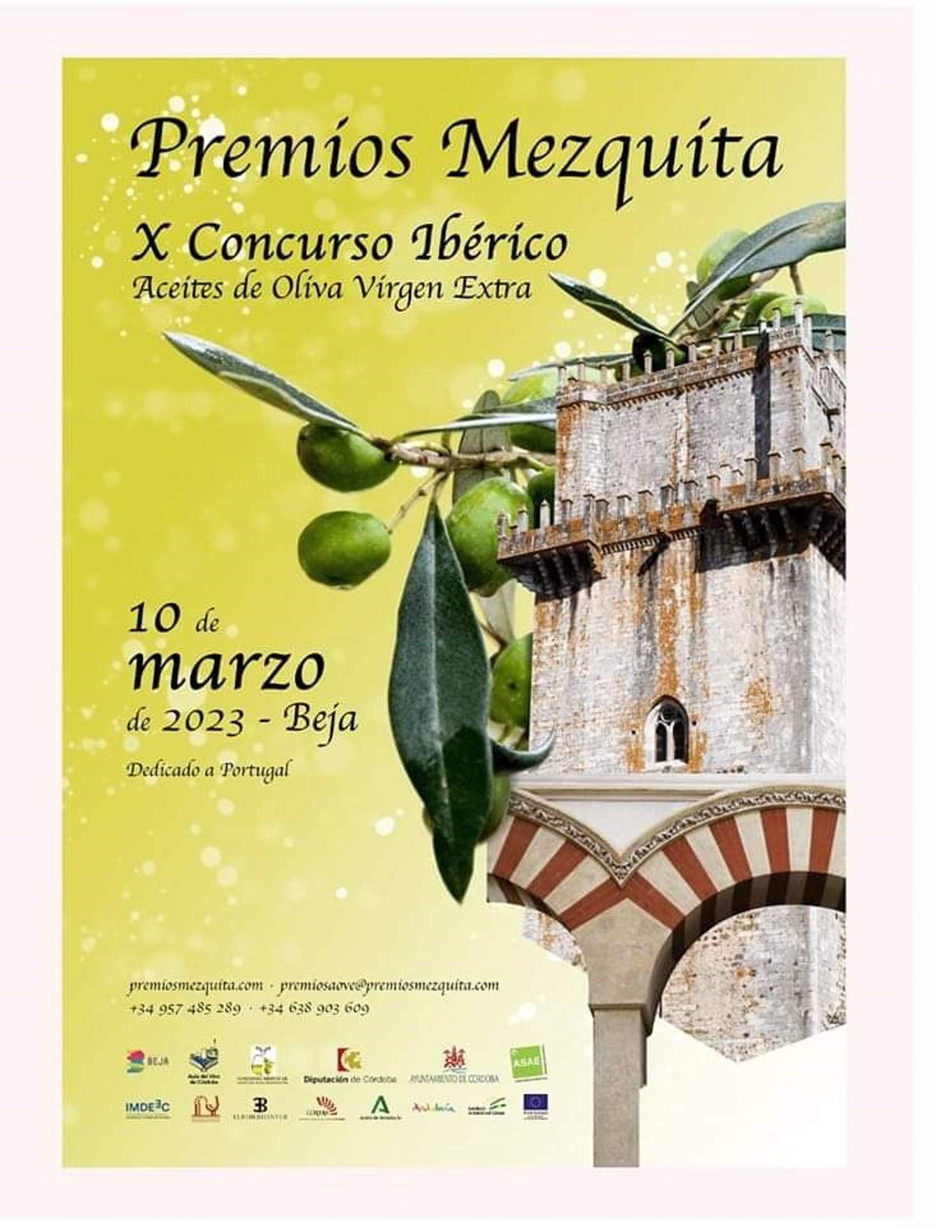 Cartel del Concurso Ibérico a la Calidad de los Aceites de Oliva Virgen Extra, Premios Mezquita, que estará dedicado este año a Portugal y se celebrará en Beja. - AYUNTAMIENTO DE CÓRDOBA