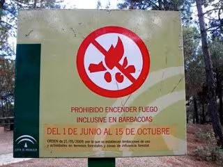La Consejería de Agricultura, Ganadería, Pesca y Desarrollo Sostenible recuerda que desde el 1 de junio hasta el 15 de octubre, época de alto riesgo de incendios forestales en Andalucía, queda prohibida la realización de barbacoas; aún en zonas habilitadas para tal fin (áreas recreativas), las quemas agrícolas y también la circulación de vehículos a motor por los espacios forestales y de influencia forestal, que son aquellos terrenos agrícolas y urbanos situados a menos de 400 metros de los forestales.