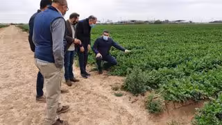 El consejero Antonio Luengo, junto a responsables de Probelte y el alcalde de Torre Pacheco, Antonio León, durante una visita a una finca tratada con biofertilizantes - GOBIERNO REGIONAL