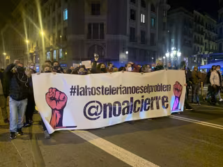 Unos 800 trabajadores del sector hostelero y ocio nocturno catalán se concentran en la plaza Sant Jaume de Barcelona en protesta contra las restricciones aplicadas a causa del Covid-19, el 21 de diciembre de 2020. - EUROPA PRESS