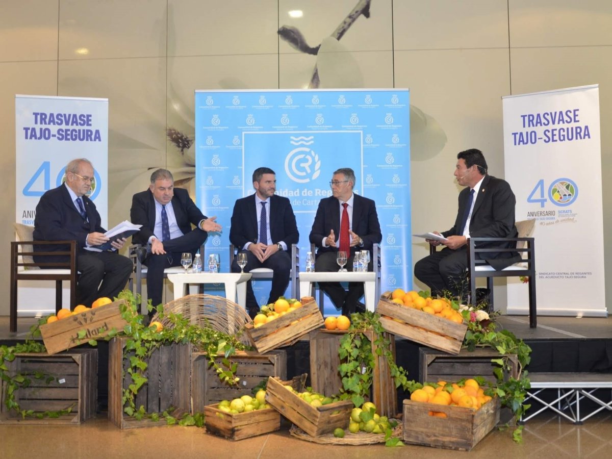 A continuación tuvo lugar una mesa redonda sobre los 40 años del trasvase Tajo-Segura, moderada por el presidente de la CRCC, y que contó con la participación del Consejero de Agua, Agricultura, Ganadería, Pesca y Medio Ambiente de Murcia, Antonio Luengo, del Presidente de FENACORE, Andrés Del Campo, del Presidente de la Confederación Hidrográfica del Segura, Mario Urrea, y del Presidente del Sindicato Central de Regantes del Acueducto Tajo-Segura, Lucas Jiménez.