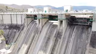 Archivo - Imagen aérea de la presa de Beniarrés (Alicante) durante la actuación en las compuertas - DELEGACIÓN GOBIERNO CV - Archivo