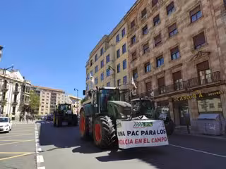Una treintena de vehículos ha protagonizado una marcha encabezada por cuatro tractores que han recorrido las calles de la ciudad de Salamanca para pedir una nueva Política Agrícola Común (PAC) que destine sus ayudas a los agricultores a título principal.