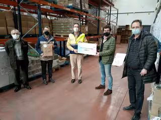 La entrega del dinero se ha realizado en las instalaciones del Banco de Alimentos de La Rioja con las asistencias de Jorge Martínez, creador de la campaña; así como de Luis Zapata, gerente de ABZ Impresores y Juan Martín de IM.A.G.I.S., al presidente del Banco, José Manuel Pascual Salcedo y al director de Eventos del Banco, Miguel Ángel Virumbrales.