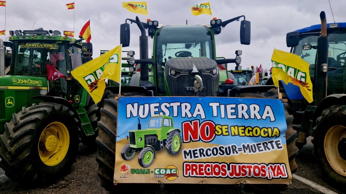 Cerca de 1.000 tractores y unas 4.000 personas han salido a la calle este jueves en León capital para reivindicar una agricultura "digna", expresar su rechazo al acuerdo UE-Mercosur, luchar por la pervivencia del sector agroganadero y por el futuro de la provincia, en un acto reivindicativo que ha estado marcado por la unidad de acción de las cuatro organizaciones agrarias: Asaja, UCCL, Ucale-COAG y UGAL-UPA.