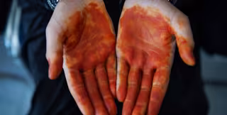 Una mujer siria refugiada en Mafraq (Jordania), muestra sus manos a la cámara - Miguel Lizana/AECID