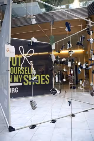 La exposición invita a los ciudadanos a ponerse en el lugar de los niños que viven en países en desarrollo y a alzar la voz en favor de la lucha contra la mortalidad infantil y el nulo difícil acceso a servicios tan básicos como la salud o la educación. 'Ponte en Mi Piel' incluye una muestra de zapatos infantiles usados recogidos en los cinco continentes, que resumen la historia del niño o niña que los calzó.