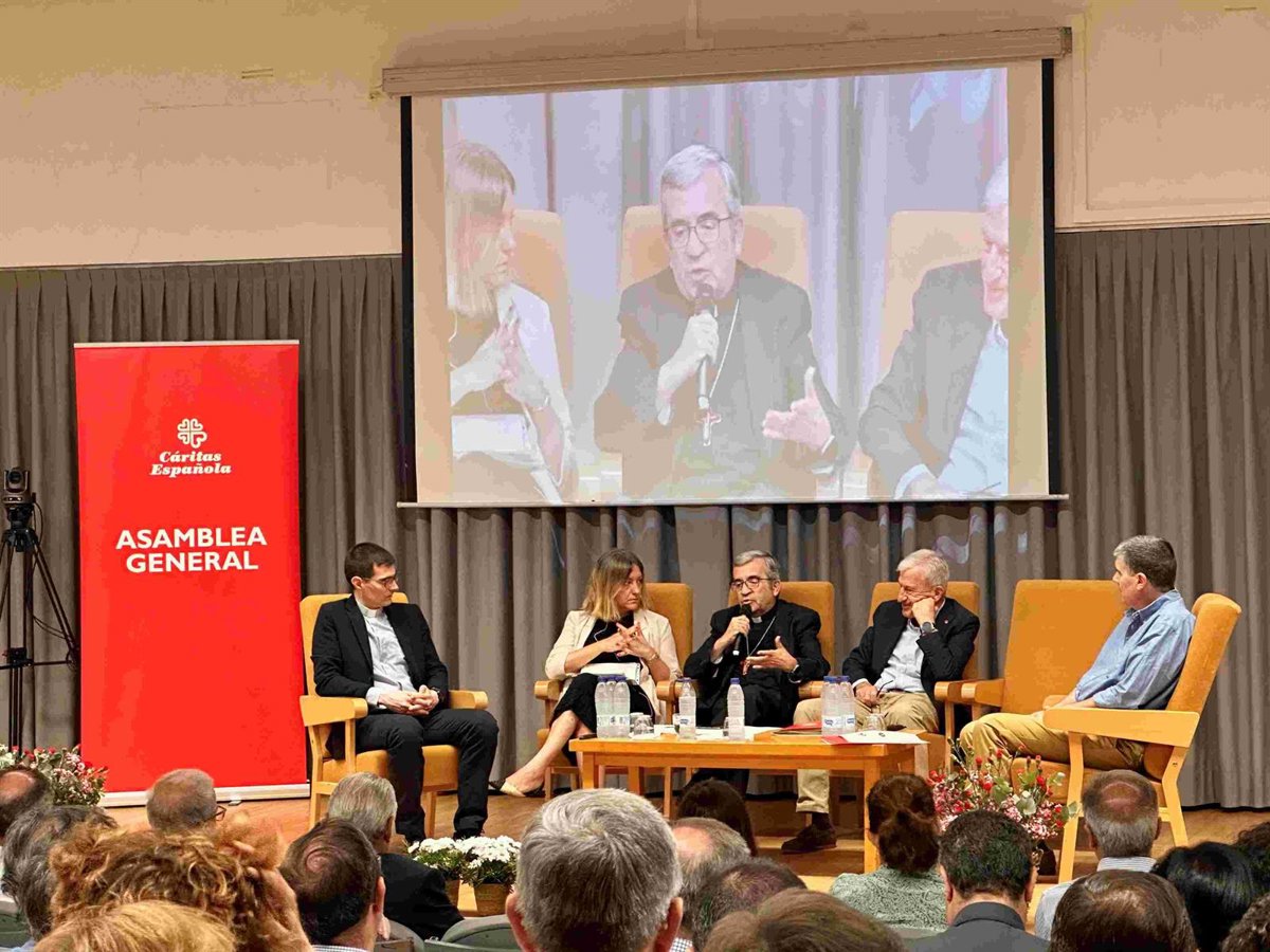 La sesión inaugural de la Asamblea contó con la presencia del presidente de la Conferencia Episcopal Española y arzobispo de Valladolid, Luis Argüello. El prelado estuvo acompañado por los miembros del equipo directivo de Cáritas Española, Manuel Bretón, Luis Miguel Rojo Septién y Natalia Peiro, presidente, delegado episcopal y secretaria general, respectivamente.