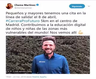 Por último, y al igual que en otras ediciones, la Carrera ProFuturo contará con la presencia de reconocidas figuras del deporte como Chema Martínez, Abel Antón y Martín Fiz. El plazo de inscripción estará abierto hasta el sábado 7 a las 20.00 horas en 'http://www.carrerafundacionprofuturo.com/'