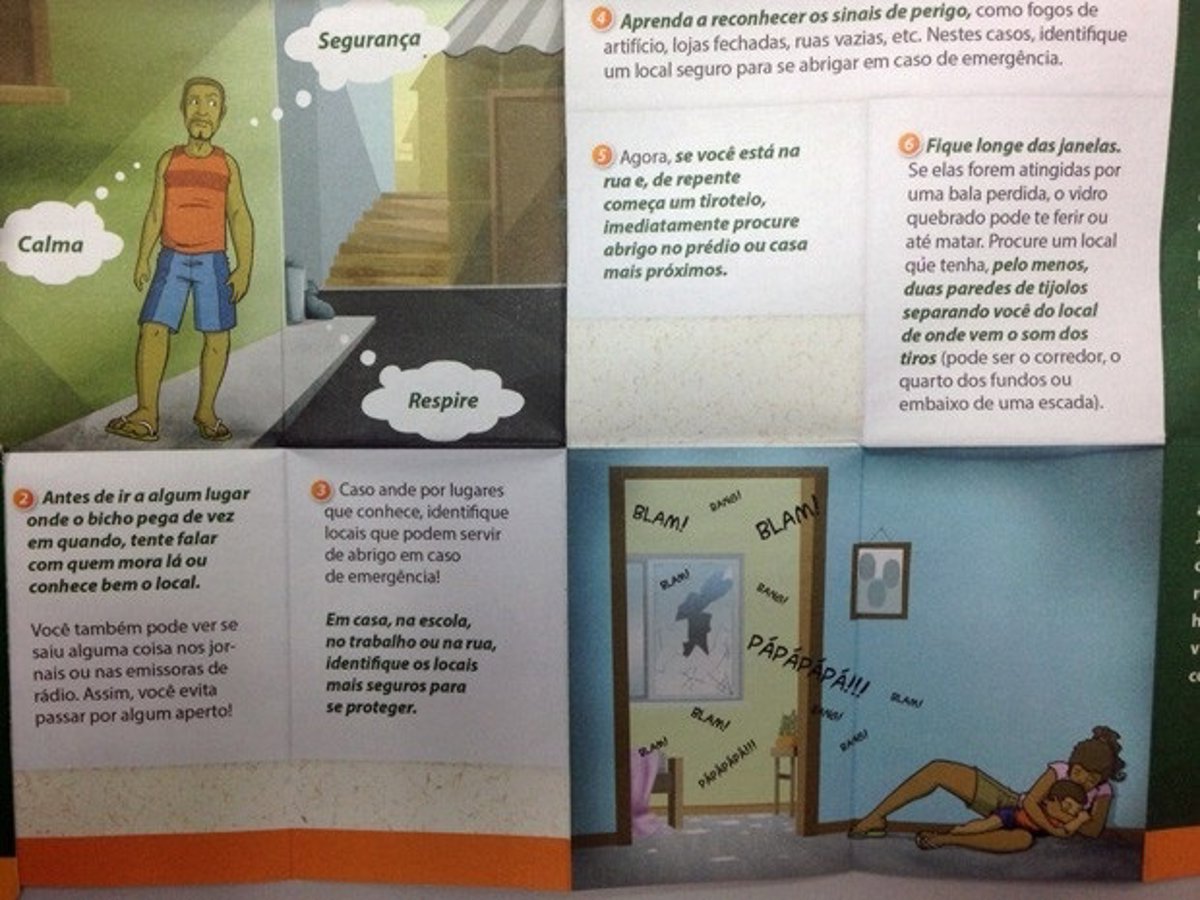 Muchas balas perdidas acaban rompiendo los cristales y también pueden provocar heridas por este motivo; además, en muchas ocasiones atraviesan las frágiles paredes de ladrillo de las casas de las favelas, por lo que el folleto aconseja esconderse siempre detrás de dos muros.