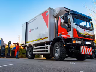 Personal de Cruz Roja descarga el material donado por Totalcare. - CRUZ ROJA