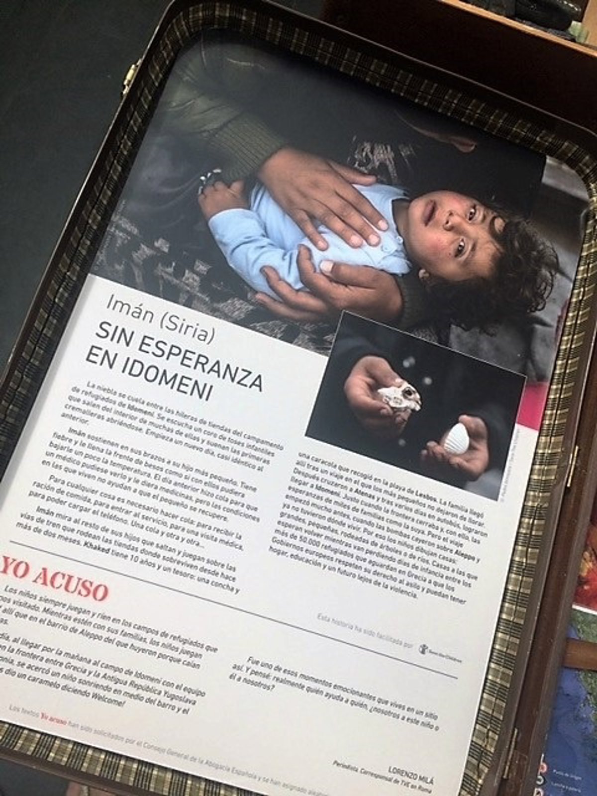 Una de las maletas es, en sentido figurado, la de Karim, un sirio que resultó ser el único superviviente de un naufragio en el que perecieron 46 refugiados como él. La primera en caer fue una niña pequeña, intoxicada por el combustible que se derramaba en la embarcación. En su equipaje hay una pequeña cámara de fotos y un diario que, asegura, es "exactamente igual" al que él utilizaba para anotar cada fase del camino.