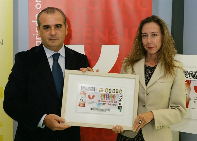 El cupón fue presentado por la directora general adjunta de Servicios Sociales para Afiliados de la ONCE, Patricia Sanz, y el presidente de la Plataforma del Voluntariado, Luciano Poyato, durante la celebración de la Escuela de Otoño de la Plataforma del Voluntariado, que tuvo lugar el pasado 15 de noviembre.