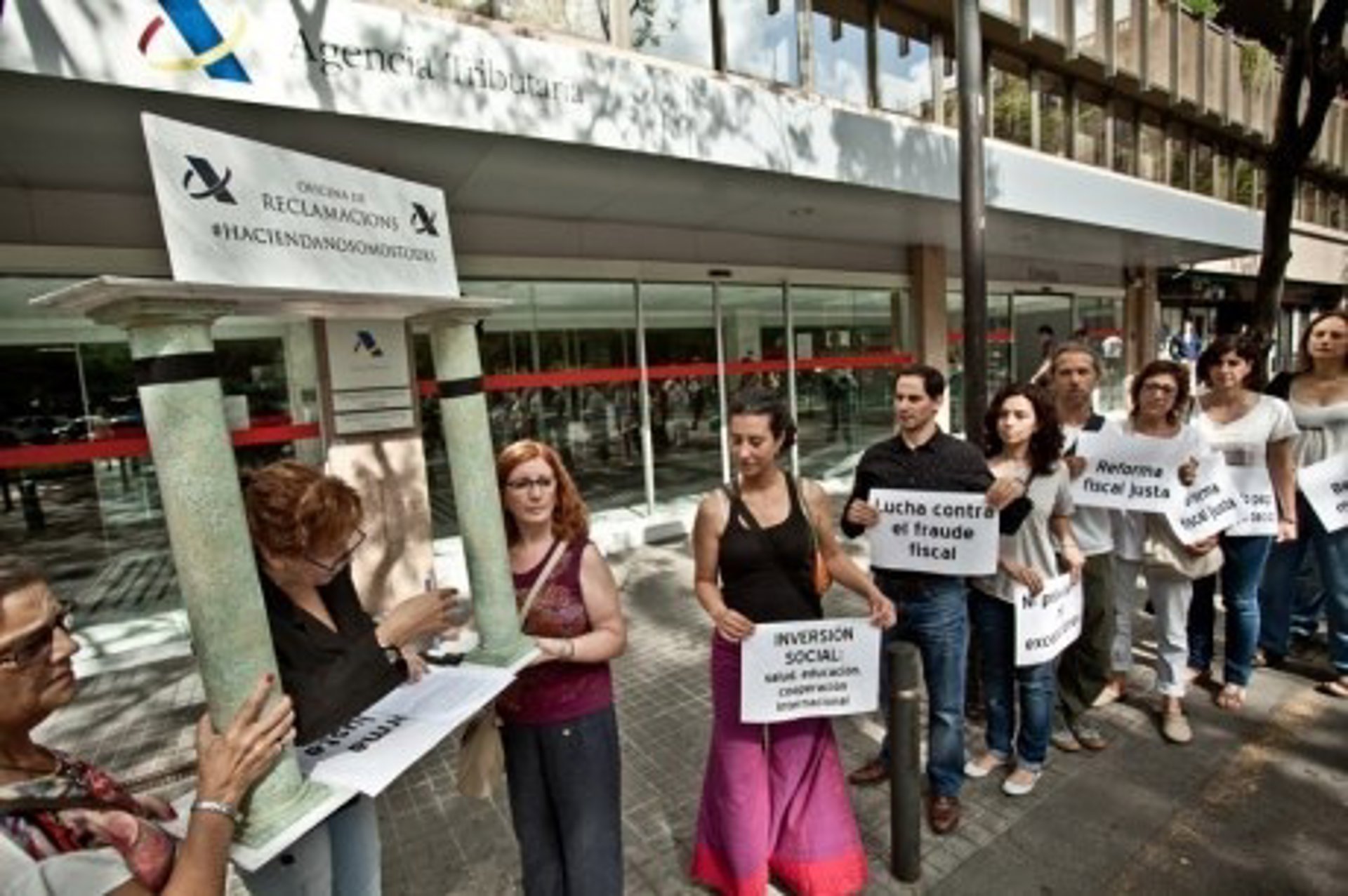 La ONG ha organizado este martes una protesta contra la reforma fiscal frente a la sede del Ministerio de Hacienda en Madrid, que ha estado secundada por otros actos en diez ciudades españolas, para pedir una fiscalidad "más justa" y que se tomen medidas decididas contra la evasión fiscal.