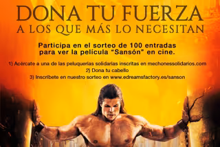 La distribuidora European Dreams Factory y la asociación 'Mechones Solidarios' han lanzado la campaña 'Dona tu pelo, dona fuerza', con motivo del próximo estreno de la película 'Sansón', sobre el famoso personaje bíblico dotado de una fuerza sobrenatural gracias a su melena.