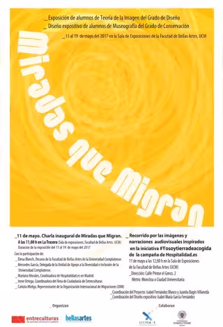 La ONG Entreculturas y la Facultad de Bellas Artes de la Universidad Complutense (Madrid) presentan el próximo jueves 11 de mayo la exposición 'Miradas que Migran'. Un trabajo colaborativo, entre la ONG de la Compañía de Jesús y los alumnos de la asignatura de teoría de la Imagen, impartida en el Grado de Diseño, que muestra 30 carteles y narraciones audiovisuales, inspirados en las causas de la pobreza, la desigualdad, las migraciones forzosas y la degradación ambiental.