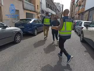 Agentes de la Policía Nacional durante la detención de una de las integrantes del grupo criminal dedicado a la trata de personas con fines de explotación sexual. - POLICÍA NACIONAL