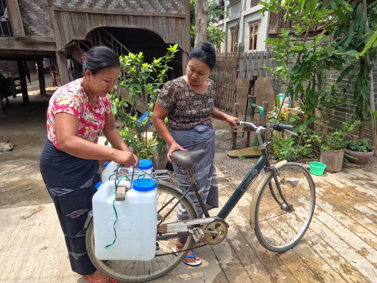 Dos mujeres birmanas transportan agua en garrafas. - SAW MOO KALE
