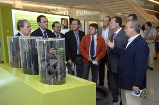 La exposición 'Recicla y sonríe' muestra las aplicaciones del reciclaje de neumáticos