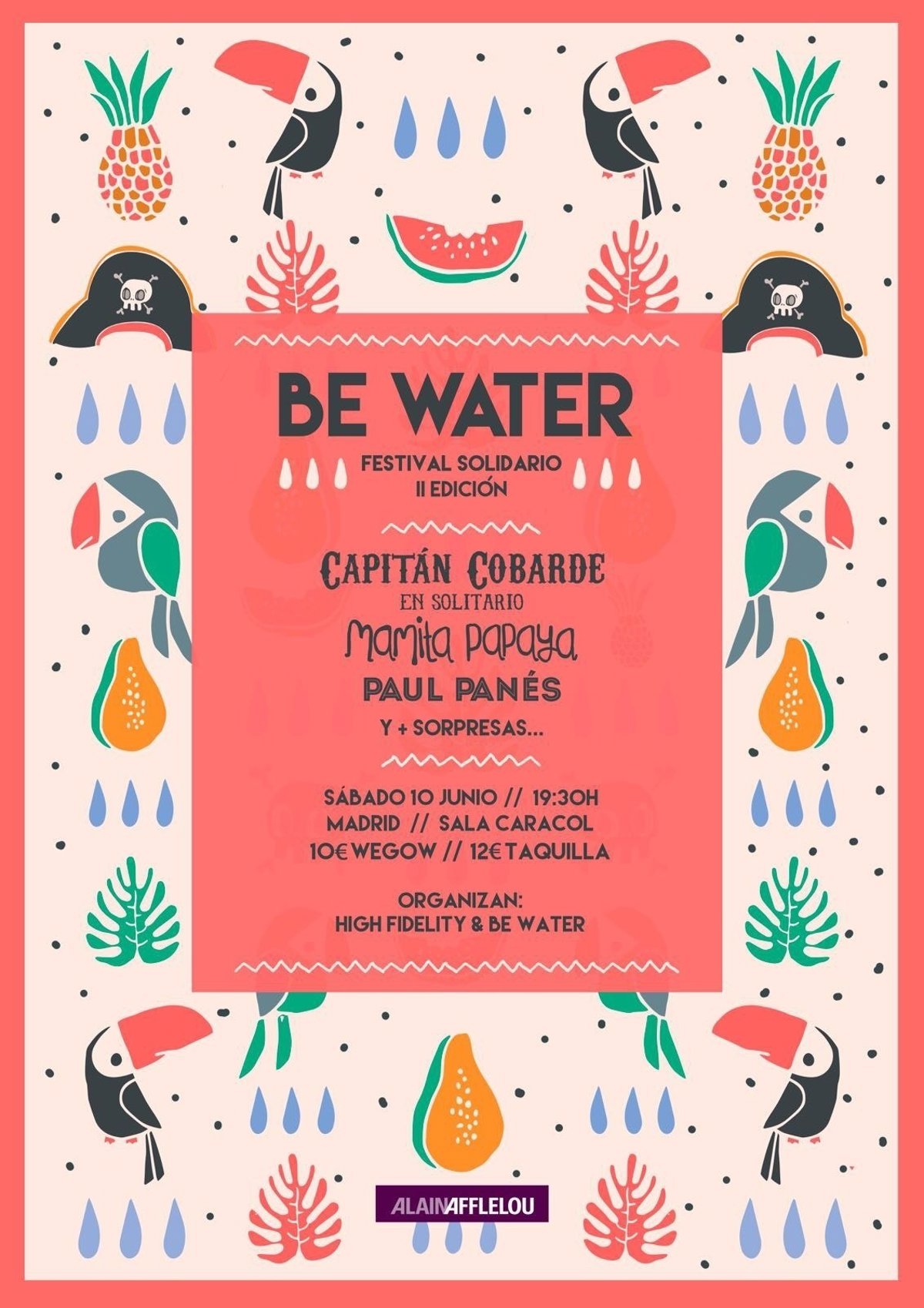 La segunda edición del festival solidario 'BE WATER', organizado por la agencia de Management y Booking High Fidelity y por la ONG Be Water, tendrá lugar este sábado 10 de junio en la Sala Caracol de Madrid a partir de las 19.30 horas, según informan los impulsores.