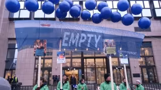 Frente al edificio donde se reúnen los ministros de pesca han desplegado una pancarta con un mar y la palabra 'Empty' (vacío en inglés). En el Consejo se discuten las cuotas pesqueras para 2015 de la mayoría de pesquerías, incluidas las del Atlántico, Mar del Norte y el Mar Negro.